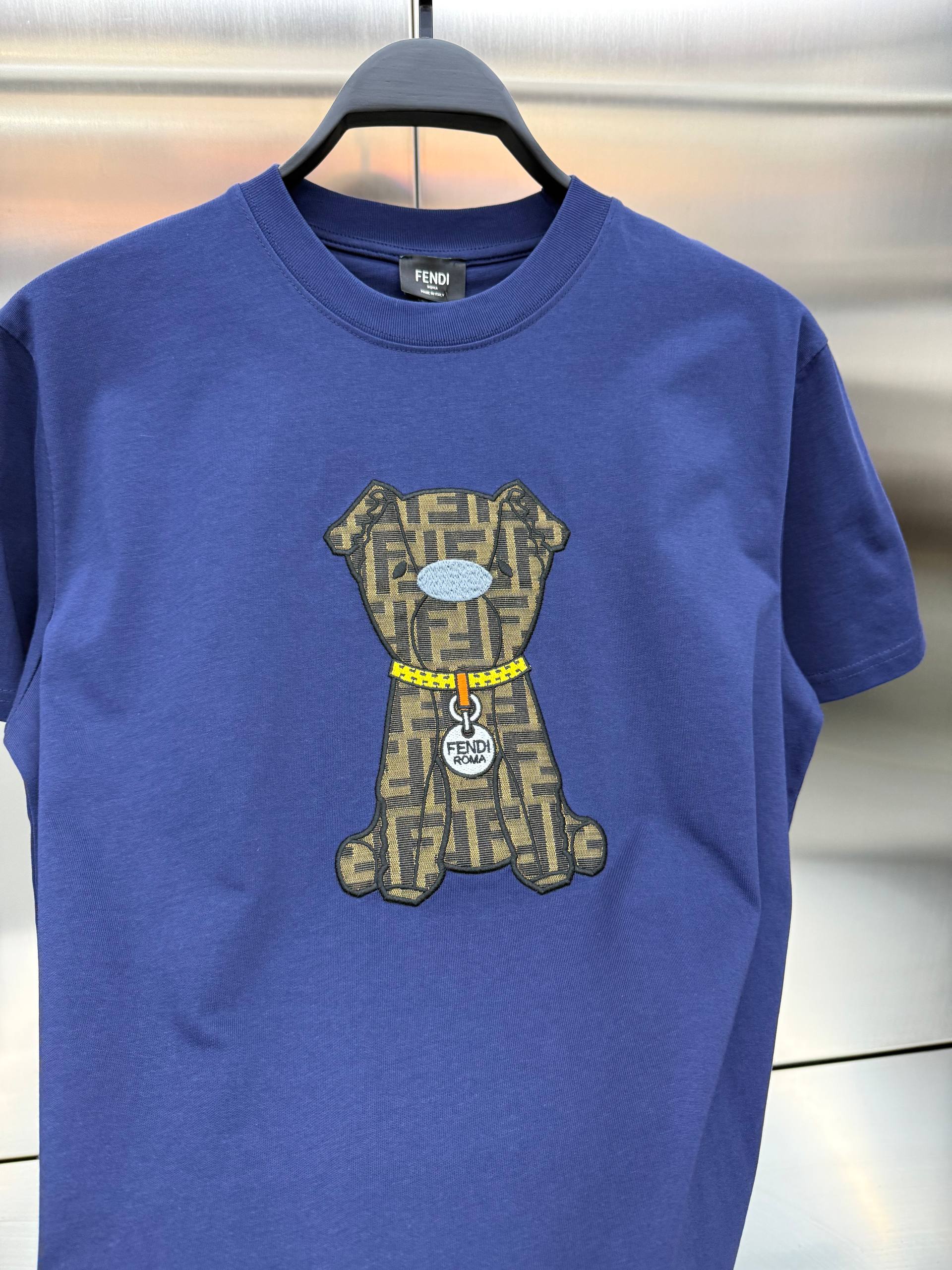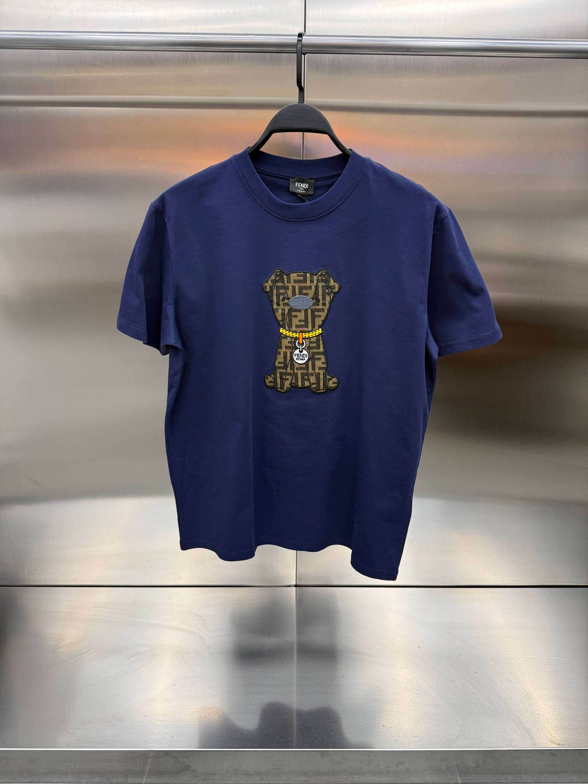 Fendi Lacivert Renk Özel Logolu Avrupa Kalıp Tişört