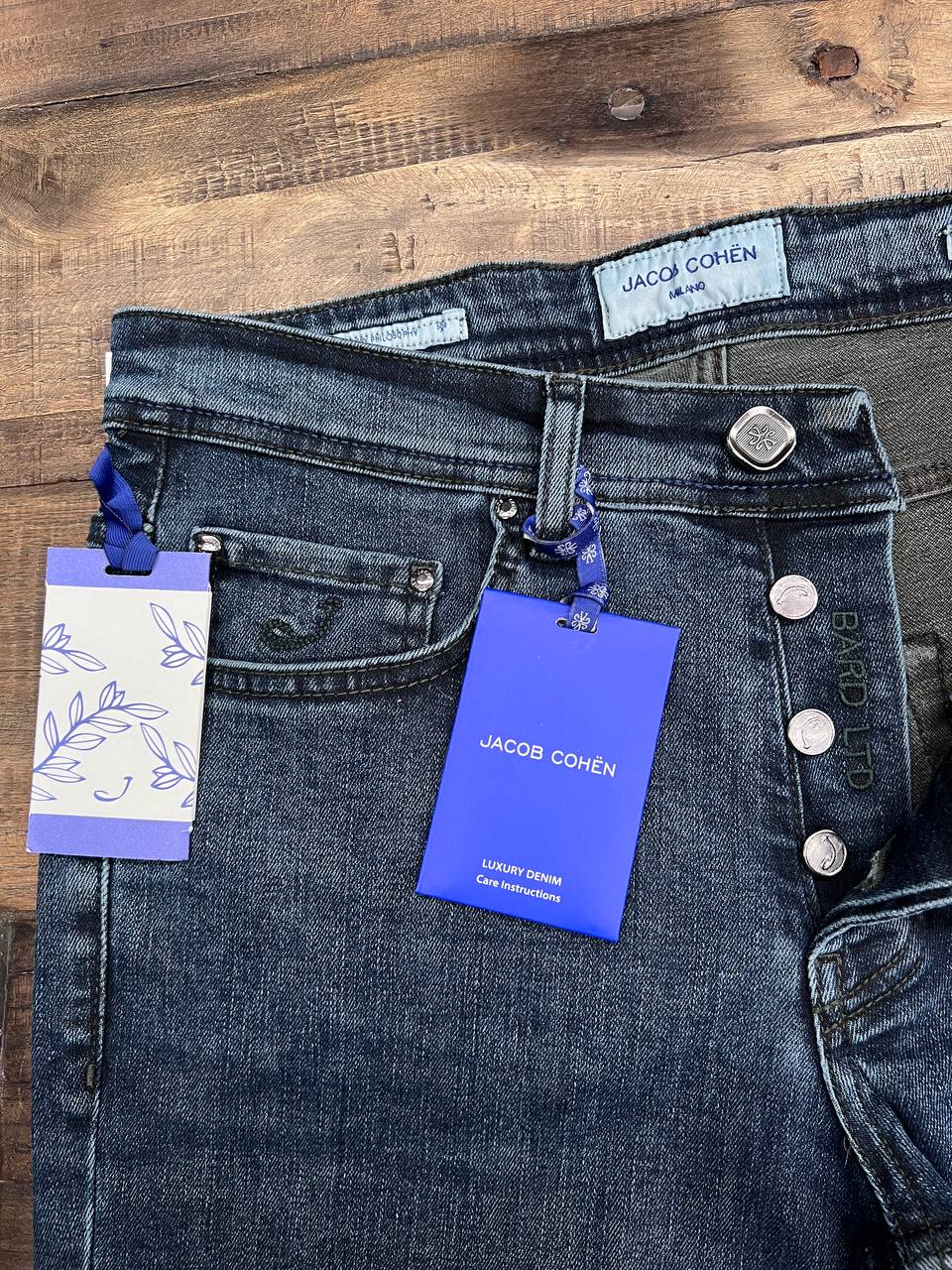 Jacop Cohen Özel Su Yeşili Özel Renk Beyaz İşleme Kot Tay Tüyü Etiket