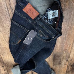 Armani Deri Etiket Kırçıllı Mavi Kot Pantolon